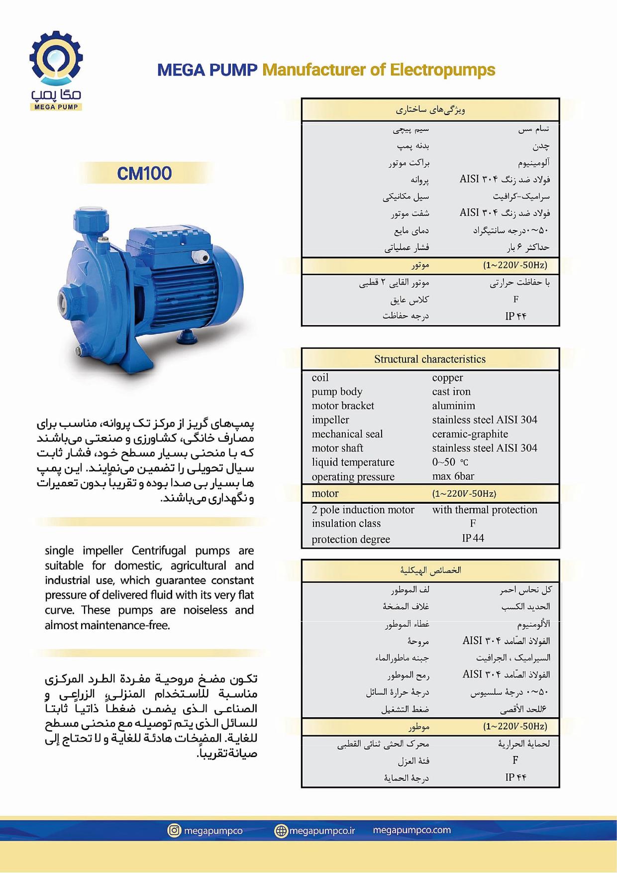 اطلاعات فنی الکتروپمپ MEGA-CM100
