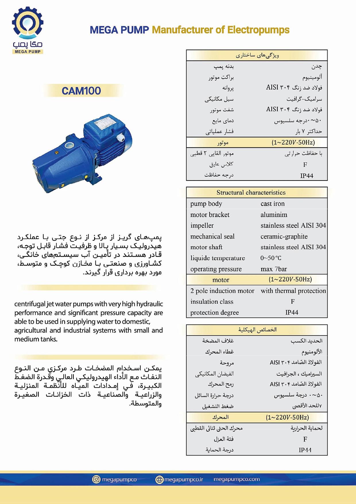 اطلاعات فنی الکتروپمپ MEGA-CAM100
