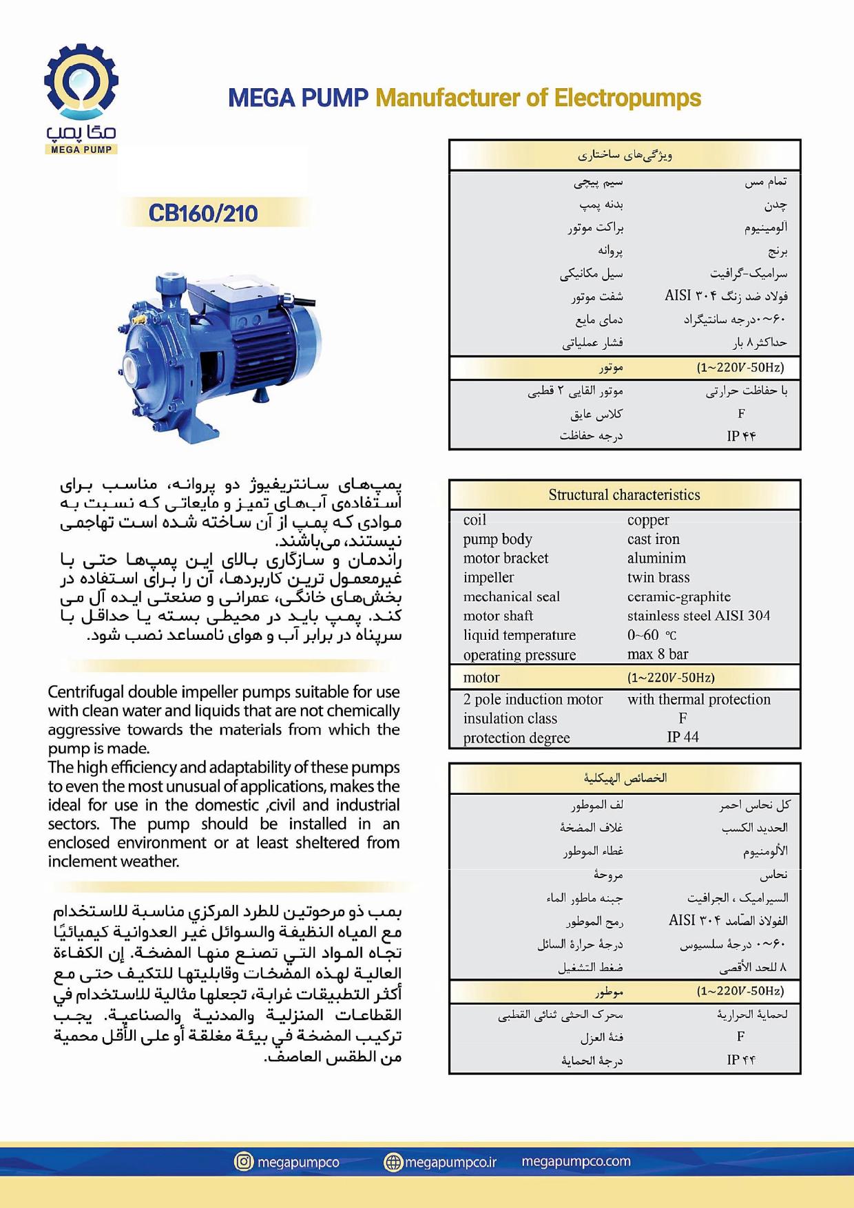 اطلاعات فنی الکتروپمپ MEGA-CB160/210