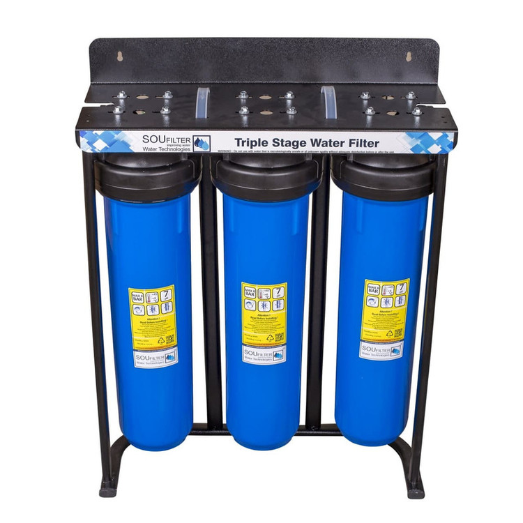 پیش تصفیه سه مرحله جامبو سوفیلتر به عنوان پیش تصفیه آب در مسیر لوله آب قرار می گیرد و با استفاده از فیلتر الیافی درون آن گل و لای، شن و ماسه و ذرات معلق را تا 5 میکرون تصفیه می کند. این محصول به عنوان پیش تصفیه آب ساختمان، ویلا، کارگاه و هر جایی که نیاز به تصفیه ذرات معلق آب ورودی باشد به کار میرود. ارتفاع فیلتر درون این محصول 20 اینچ و پورت ورودی و خروجی آن از جنس پلاستیک و 1 اینچ (لوله 3) می باشد .این پکیج شامل یک مجموعه پیش تصفیه 3 مرحله ، 2 عدد فیلتر الیافی و یک عدد فیلتر کربن میباشد. این محصول بهمراه فیلتر ارسال میگردد.