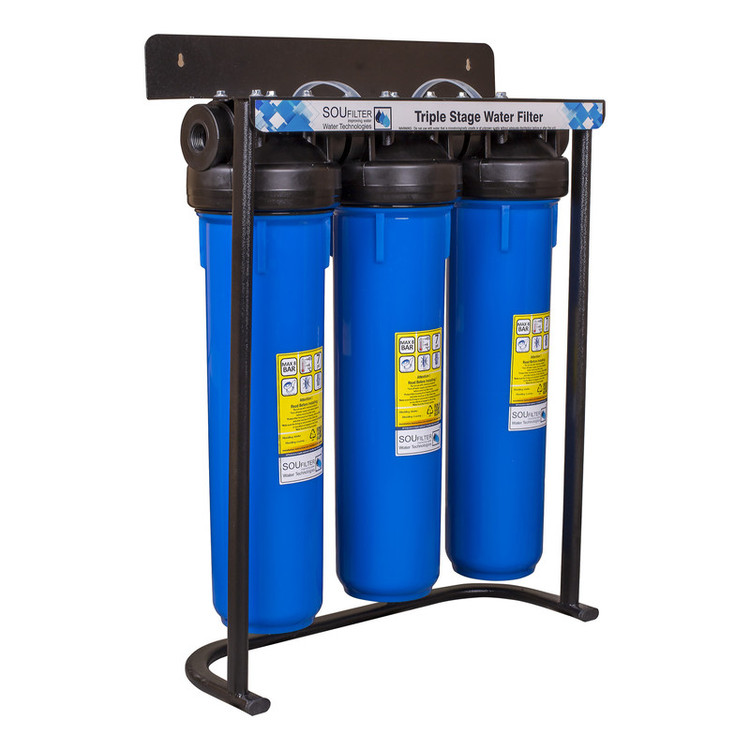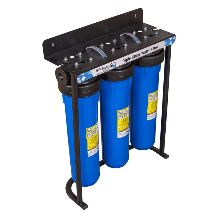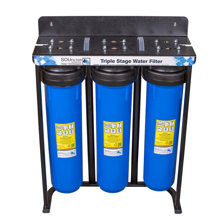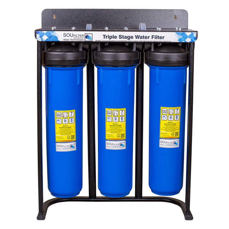 پیش تصفیه سه مرحله جامبو سوفیلتر به عنوان پیش تصفیه آب در مسیر لوله آب قرار می گیرد و با استفاده از فیلتر الیافی درون آن گل و لای، شن و ماسه و ذرات معلق را تا 5 میکرون تصفیه می کند. این محصول به عنوان پیش تصفیه آب ساختمان، ویلا، کارگاه و هر جایی که نیاز به تصفیه ذرات معلق آب ورودی باشد به کار میرود. ارتفاع فیلتر درون این محصول 20 اینچ و پورت ورودی و خروجی آن از جنس پلاستیک و 1 اینچ (لوله 3) می باشد . این محصول بدون فیلتر ارسال میگردد..