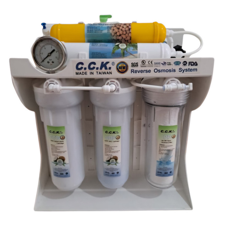 دستگاه تصفیه آب سی سی کا cck 6s پیشترفته ترین و کامل ترین تصفیه آب خانگی با فناوری سیستم اسمز معکوس میباشد (RO) که در 6 مرحله با 6 فیلتر آب را تصفیه میکند که شامل فیلتر های PP + UDF + CTO + MEMBRANE + POST CARBON + MINERAL همراه با مخزن ذخیره آب 4 گالن و فیلتر ممبران 13 لایه و هوزینگ های مقاوم برای آب بندی بهتر است. این دستگاه به دلیل ابعاد بسیار متناسب با فضاهایی مانند کابینت زیر ظرفشویی و همچنین کیفیت ساخت فوق العاده بالا به سرعت یکی از پرفروش ترین دستگاه های تصفیه در دنیا بدل شده است ؛ همین محبوبیت باعث شده تا تولید کنندگان زیادی با درج لوگو و نام سی سی کا روی محصولات عمدتاً بی کیفیت خود ، از نام این شرکت برای رسیدن به اهداف تجاری و افزایش فروش محصولاتشان اقدام کنند .تصفیه آب CCk با شاسی فایبرگلاس بدن زنگ زدگی تا سالیان زیادی به کار خود ادامه میدهد. لازم به ذکر است شیر برداشت این محصول استیل ستاره ای و کلیه اتصالات فیتینگی فود گرید می باشند.