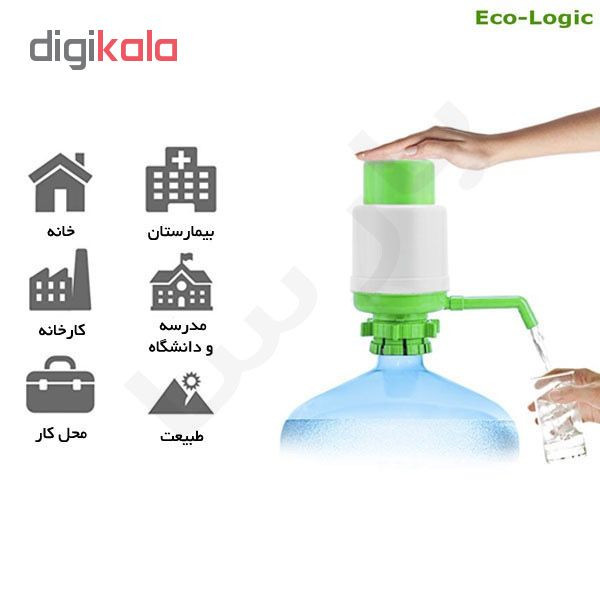 پمپ دستی گالن آب eco-logic وسیله ای است که بر روی گالن های بزرگ آب معدنی نصب می شود و بدون نیاز به بلند کردن گالن می توانید به آسانی از آن آب بردارید و نیازی به قرار دادن گالن بر روی دستگاه آب سرد کن نیست. فقط کافیست دکمه روی پمپ را فشار دهید و آب مورد نیاز خود را از گالن خارج نمایید. پمپ دستی گالن آب در منزل ، محل کار ، مدرسه ، کارخانه ، نمایشگاه و . . . قابل استفاده می باشد. نصب راحت از ویژگی های مهم پمپ دستی گالن می باشد. همچنین این وسیله بر روی تمامی گالن های آب معدنی قابل نصب است. ویژگی ها و مشخصات کلی پمپ دستی:طراحی ساده و کاربردی، نصب راحت استفاده آسان و بهداشتی قابل نصب بر روی تمامی گالن های آب معدنی مناسب برای استفاده در محل کار ، منزل ، کارخانه ، نمایشگاه و . . . دارای درپوش محافظ بر روی لوله خروجی دارای ۲ عدد لوله استخراج در مجموع این پمپ برای افرادی که میخواهند بدون دستگاه آبسردکن و بدون برق و باطری از گالن های آب استفاده کنند، میتواند گزینه مناسبی باشد.