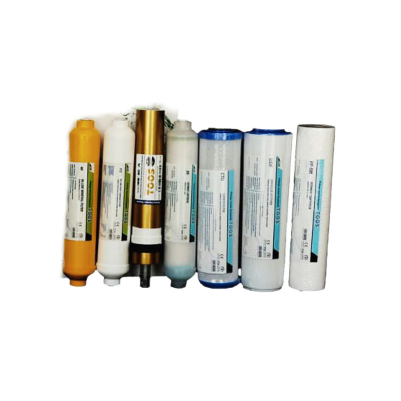 پک فیلتر ۷گانه تصفیه آب خانگی توس شامل 7 فیلتر مراحل مختلف دستگاه تصفیه آب خانگی است که عملکرد تصفیه آب را بهینه و کامل میکند. این مجموعه شامل فیلتر الیافی (PP)، کربن گرانول (UDF)، کربن بلاک (CTO)، فیلتر محافظ ممبران، ممبران اسمز معکوس (RO)،فیلتر پست کربن، و فیلتر مینرال است. این فیلترها قابلیت حذف ذرات معلق، آلایندههای شیمیایی، کلر، بو و طعم نامطبوع، باکتریها و همچنین غنیسازی آب با مواد معدنی ضروری را دارند. پک 7 مرحلهای توس با کیفیت بالا و قیمت مناسب، انتخابی ایدهآل برای کاربران دستگاههای تصفیه آب خانگی و افرادیست که خواهان ارتقا دستگاه تصفیه آب خانگی خود به 7 مرحله ای هستند.