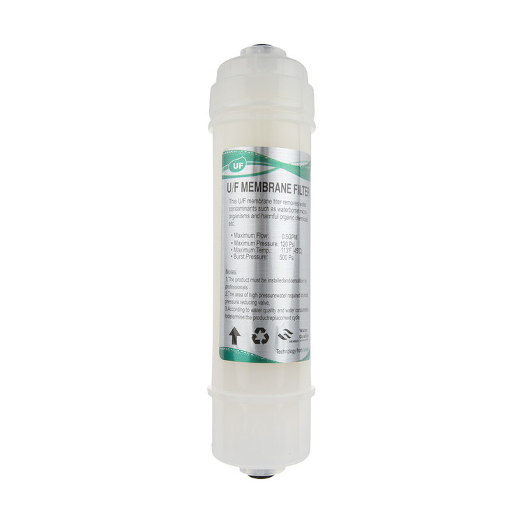 امروزه استفاده از دستگاه تصفیه کننده آب میان مردم بیش از پیش شده است. برای افرادی که در خانهشان از دستگاه تصفیه استفاده میکنند از اهمیت تعویض فیلترمطلع هستند. برای دستگاههای تصفیه کننده آب خانگی فیلترهای متعددی وجود دارد که استفاده از این فیلتر موجب تصفیه آب آشامیدنی خانهتان میشود. یکی از فیلترها، فیلتر محافظ ممبران است. اگر قصد تهیه این فیلتر را دارید، فیلتر تصفیه کننده آب ارگانیک مدل Organic-UF-6 یکی از گزینههایتان است. این فیلتر دارای وزن و ابعاد استانداردی است و شما قادرید برای دستگاه تصفیه خانگیتان از این مدل استفاده کنید. این محصول شامل 1 عدد فیلتر U/F Membrane Filter میشود. این مدل همان غشای اولترافیلتراسین است.این فیلتر توانایی جداسازی ذرات بزرگ نظیر کلوئیدها، چربیهاو باکتریها را دارد. این کالا استانداردهایی نظیر Water Quality دارد. کسب این استانداردموجب شده تا از عملکرد درست این فیلتر اطمینان داشته باشید. از دیگر ویژگیهای فیلتر تصفیه کننده آب ارگانیک مدل Organic-UF-6 میتوان به حداکثر جریان آب 0.5 GPM ، حداکثر فشار 120 PSI اشاره کرد.